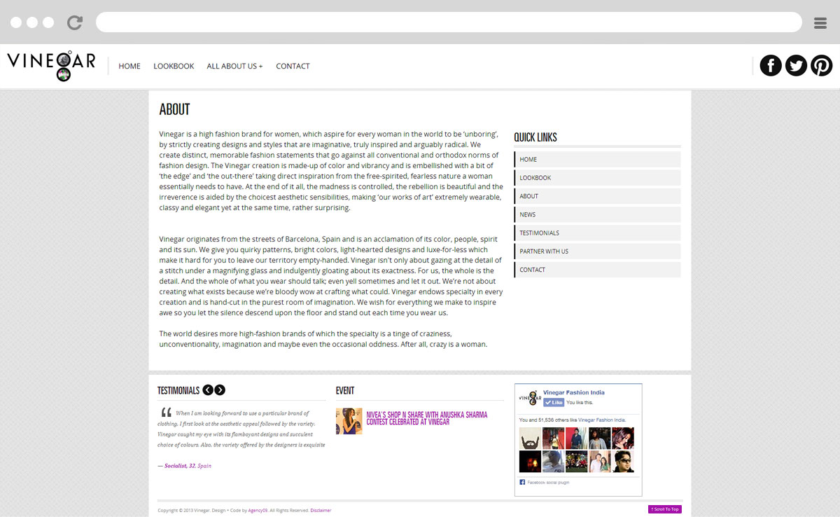 Just like a woman, Vinegar needs more than a million words to define. For your convenience we've cherry picked the best. Vinegar is- Colourful. Happy. Quirky. Not for girls. But, for the girl inside the woman.